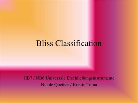 bliss classification example. There are any references about bliss classification example in here. you can look below.