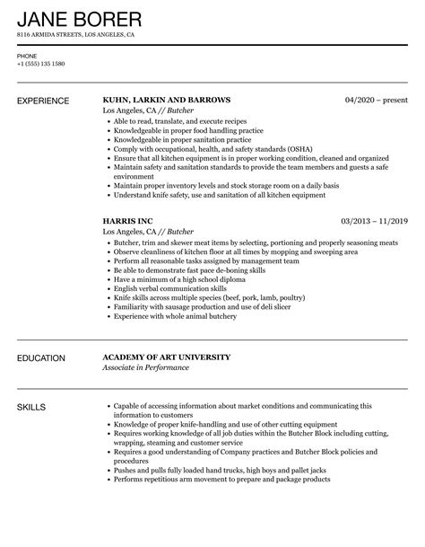 butcher job description for resume sample