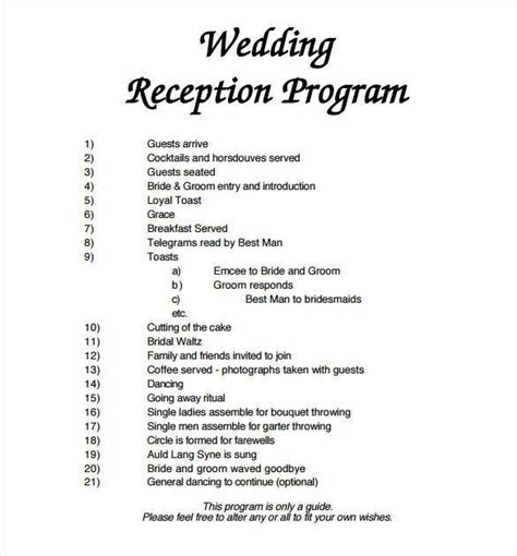 civil wedding reception program sample pdf
