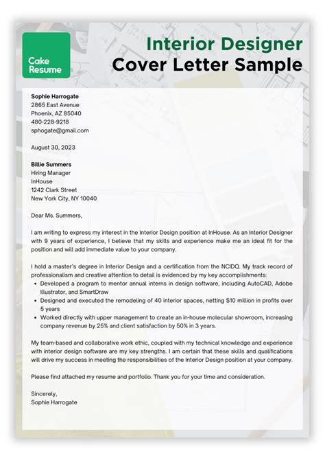 cover letter examples for interior designer