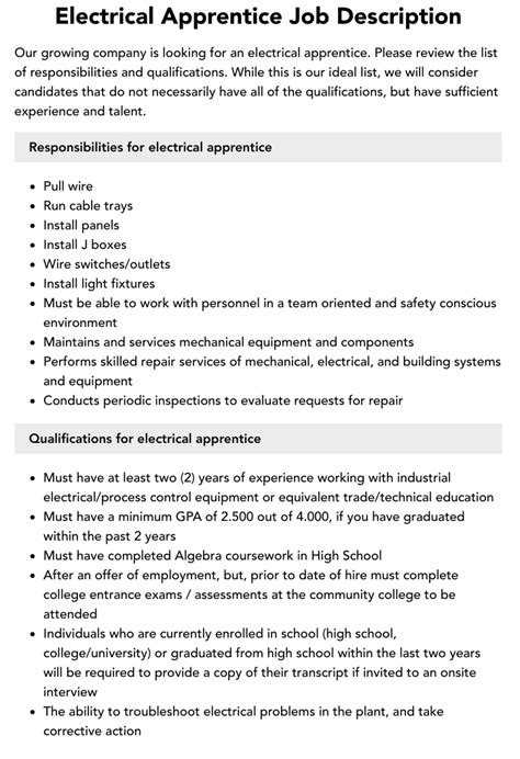 electrical apprentice job description. There are any references about electrical apprentice job description in here. you can look below.