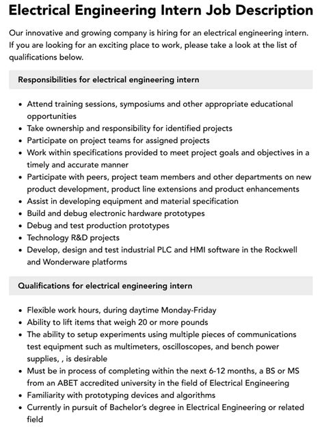 electrical engineering intern responsibilities. There are any references about electrical engineering intern responsibilities in here. you can look below.