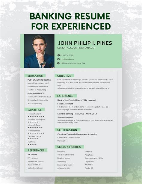 experienced sample resume for banking sector