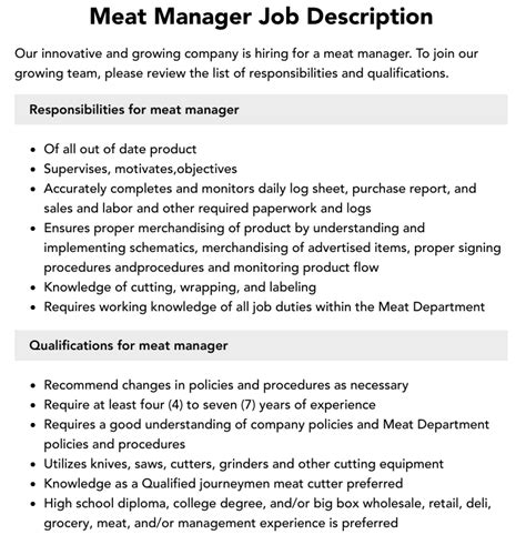 meat manager job description. There are any references about meat manager job description in here. you can look below.