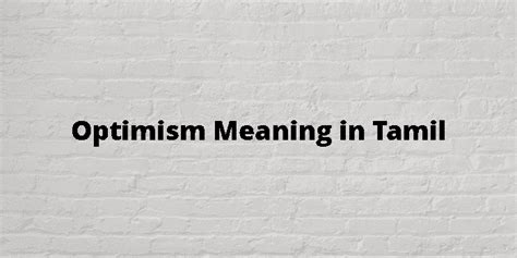 optimism meaning in tamil with example